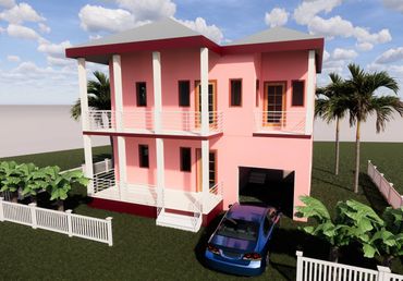 This house is a two-story home with approximately 2,540 square footage of living space. This concept comprises of three (3) bedrooms; two and a half (2.5) bathrooms, open concept Kitchen, Dining and Living Room spaces, a garage, laundry area as well as lots of porch space.